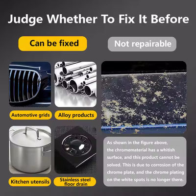 Beyond chrome surfaces, it is also highly effective on a variety of metal surfaces, making it a versatile choice for automotive, industrial, and household applications. Laboratory tests show that it removes over 99% of natural oxidation and more than 70% of severe corrosive oxide layers. For best results, use in combination with professional tools.